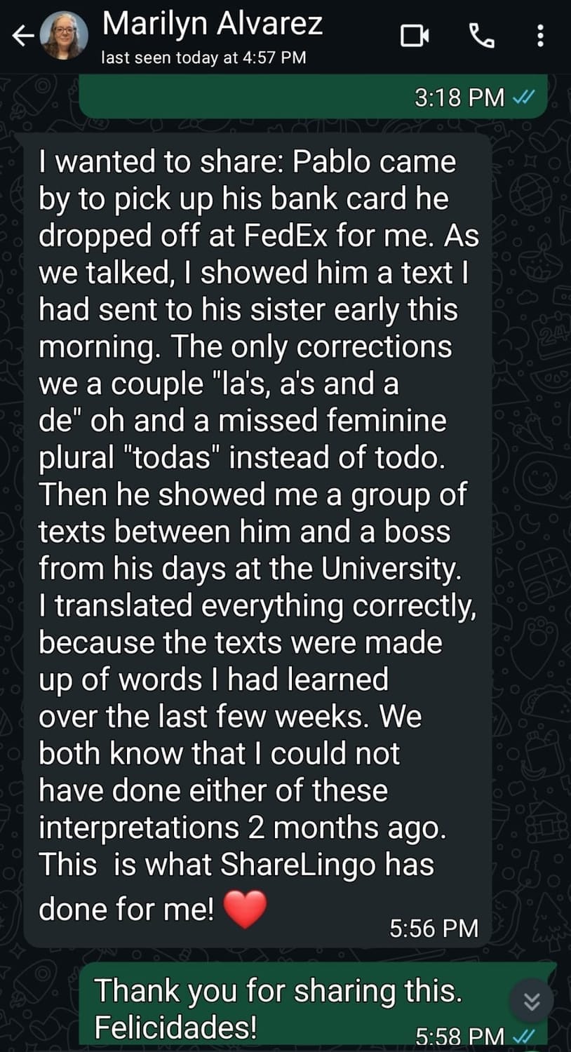 Try it out first! Join ShareLingo and get access to the Connect UPP, the Spanish Success Path Course, 5 Spanish levels, bilingual materials, The ShareLingo Method, videos and other resources.